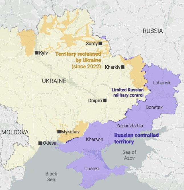 But in a major shift last week, Trump said on his Truth Social platform that Ukraine could get back ‘the original borders from where this war started’.