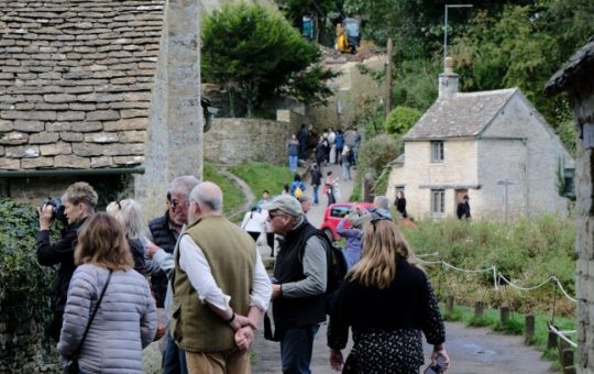 Locals says the high volume of tourists is causing chaos in Bibury in the Cotswold (Picture: Alamy Live News.) Coaches...
