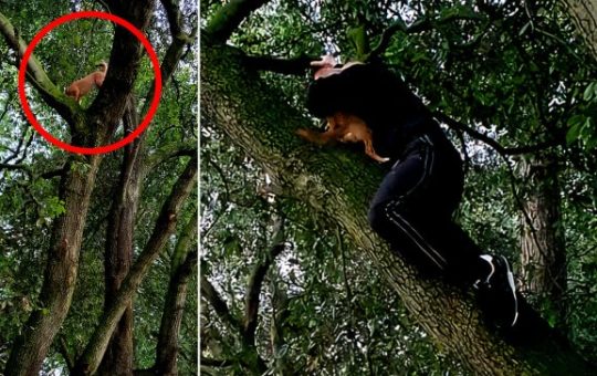 Jack was so focused on chasing a squirrel he ran around 16ft up the tree (Picture: Kelly Brooks/brooksy.74) A Good...