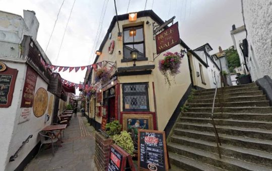 This corner building down an alley in the seaside town Torquay costs too much rent for Hole in the Wall...