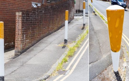 Mystery over ‘disgusting’ bollards painted like stubbed-out cigarettes