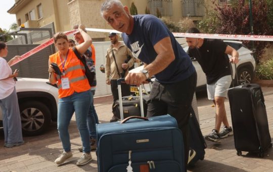 Israelis leave their homes to safer areas following an Iranian strike that hit Ness Ziona in central Israel on June...
