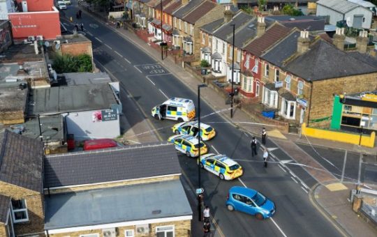 Hanworth Road, Hounslow, remains cordoned off after a stabbing this afternoon (Picture: UKNIP) A 22-year-old man has been critically hurt...