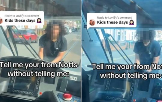 The youngsters are tram surfing even in the face of incoming traffic (Picture: TikTok) A TikTok trend that encourages children...