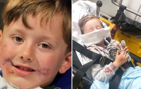Antonio Quinn, 4, was attacked by a pocket bully in Oswaldthwistle, Lancashire in what the dog owner called a ‘genuine...