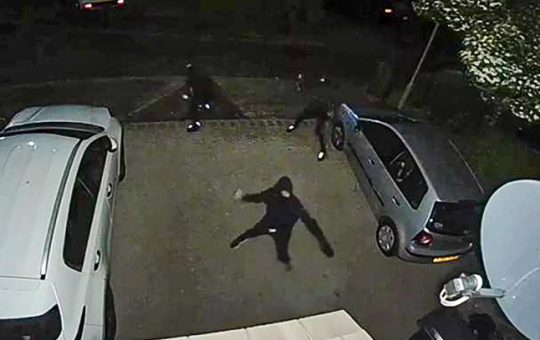 CCTV footage of the attack on a property in Eastleigh (Picture: Daily Echo/Solent News) Masked men hurled rocks at the...