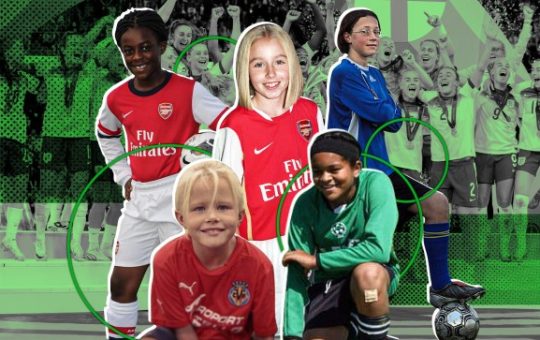 (L-R) Michelle Agyemang, Hannah Hampton, Leah Williamson, Jessica Carter and Lucy Bronze as children (Picture: Getty/REX/Alnwick Town FC Juniors/Warwick Juniors...