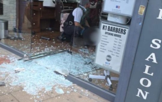 Two men are injured following a fight outside a barbershop in Sutton, South London this afternoon (Picture: UKNIP) Two men...