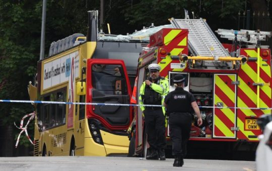 Fifteen people are injured following the collision of a double decker bus with a bridge in Greater Manchester (PIcture: MEN...