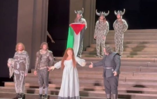 {"@context":"https://schema.org","@type":"VideoObject","name":"Metro.co.uk","duration":"T32S","thumbnailUrl":"https://i.dailymail.co.uk/1s/2025/07/20/15/100470219-0-image-a-7_1753021800896.jpg","uploadDate":"2025-07-20T15:30:06+0100","description":"A brief tussle took place between the actor who unfurled the flag on stage at the Royal Opera House and...