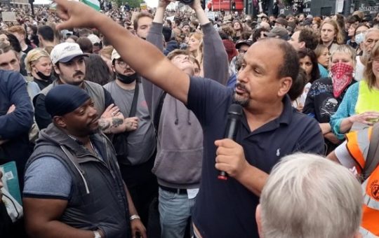 Councillor telling crowd people should have their throats (Pictures: Newsflare) A Labour politician made a gesture urging far-right protesters’ throats...