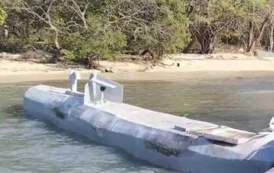 An unmanned ‘narco sub’ discovered by the Columbian Navy (Picture: Colombian Navy) Drone ‘narco subs’ could be operating in UK...