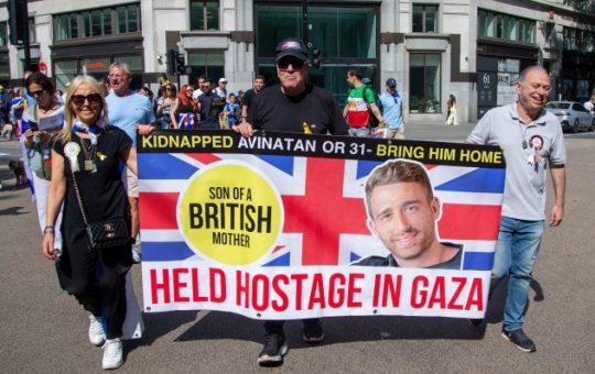 Protesters join family members of the hostages being held by Hamas at the march (Pictures: EPA) Palestinian and Israeli supporters...