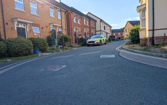 Police posted outside the address where a toddler was brought out by paramedics. (Credits: Isle of Wight County Press/Solent News)...