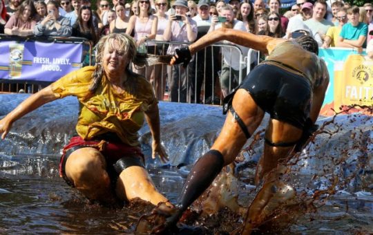 The wrestling can get quite intense (Picture: SWNS) Huge crowds turned out today to catch a glimpse of competitors greased...