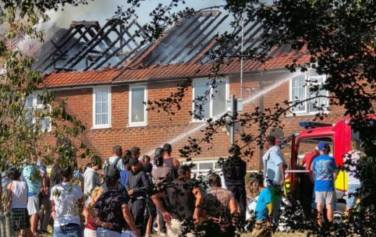 Locals can only watch on as the flames take hold (Picture: UKNIP) More than 70 firefighters are working to put...