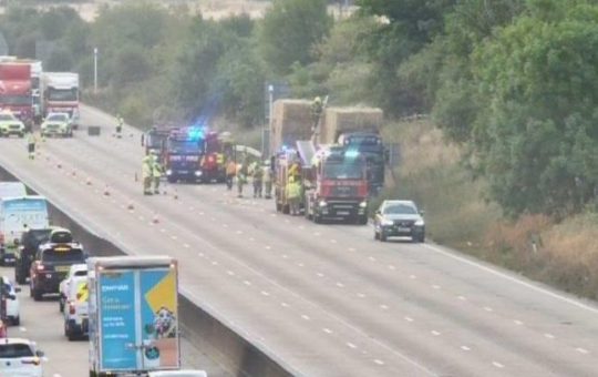 Motorists on the M25 should brace for delays after a lorry carrying hay caught on fire (Picture: National Highways) Drivers...