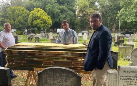 Frank Thompson’s solid gold coffin took a month to make, before he was laid to rest at a plot in...
