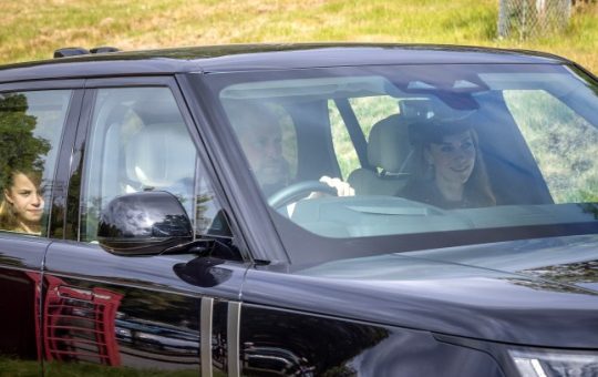 William and Kate make their way to the church, with Princess Charlotte visible in the back seat (Picture: Paul Campbell/PA...