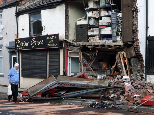 The front of Heywood Star in Heywood, Rochdale, completely collapsed following the crash in the early hours of Sunday.
