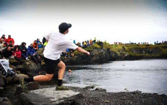 A man takes part in the 2023 World Stone Skimming Championships (Picture: Alamy Stock Photo) The World Stone Skimming Championship,...