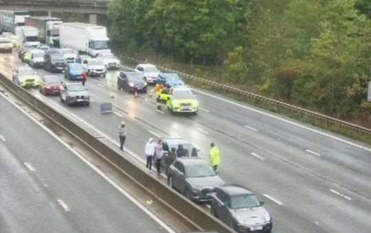 Traffic was stopped clockwise on the M25 between J25 and J27 (Picture: National Highways) A stretch of the M25 was...