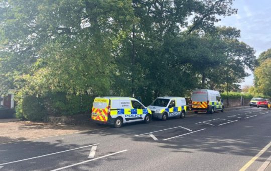 Police in Roby Road after a man allegedly had his hand cut off at a birthday party (Picture: Liverpool Echo)...