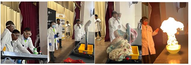 Throughout the day, colourful solutions, pressurised containers, explosive reactions, and beautiful experiments unfolded before the captivated audience. Loud bangs, explosions, flames in every colour, and the smell of burning substances filled the air—each experiment was conducted professionally and with expert safety protocols. Learners, encouraged by their science teachers and fellow club members, executed their experiments with precision to ensure successful results. These performances were the culmination of a year’s worth of preparation.