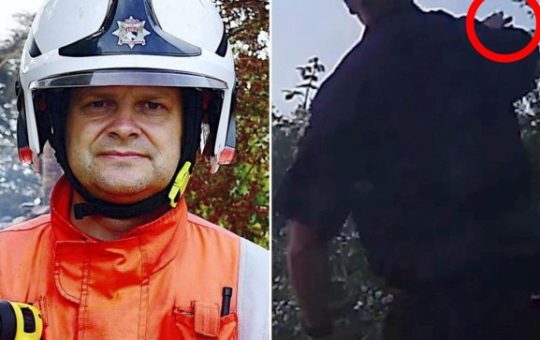 John Linden was caught on footage appearing to throw Jimmy Evans’ phone over a hedge (Picture: SWNS) A firefighter who...
