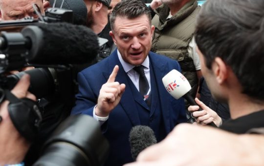 Tommy Robinson arrives at Westminster Magistrates’ Court, after being charged with failing to provide police with the PIN to his...