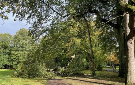 A fallen tree in Queens Park in Glasgow following strong winds from Storm Amy (Picture: PA) A road worker clearing...