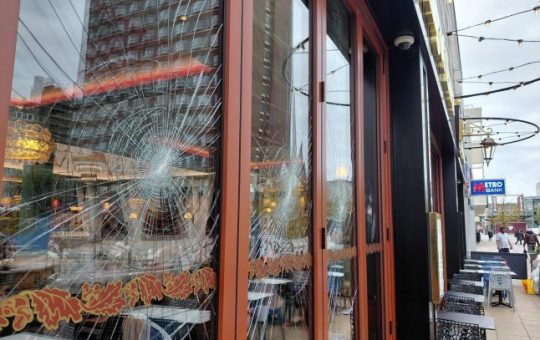 Massive cracks are across almost all of the front windows (Picture: SWNS) A Wetherspoons pub, which underwent £2,750,000 worth of...