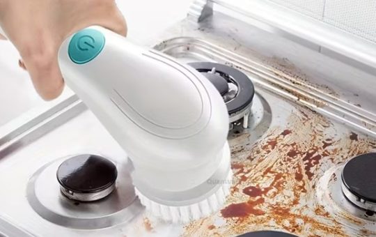 The electric cleaning brush turned on and sucked up the girl’s hair as she took it out of its box,...
