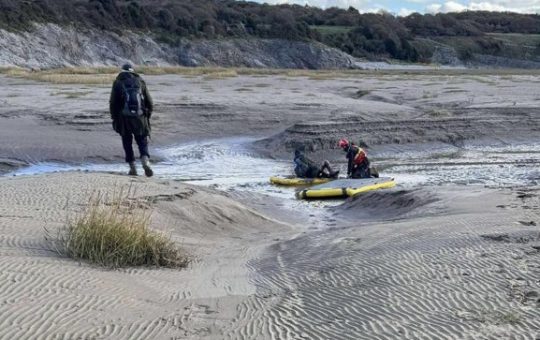 Bay Search and Rescue helping the man out after he became trapped in Morcombe Bay (Picture: Bay Search and Rescue/Facebook)...