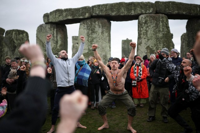 A huge crowd of people travelled to Stonehenge to mark the winter solstice today, December 21, to mark the shortest day of the year.