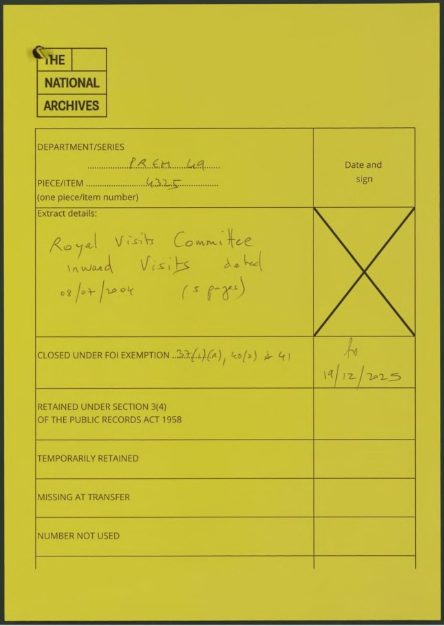However, the file was marked as ‘closed’ by the Cabinet Office at the very last moment under a legal exemption for information about the Royal Family.