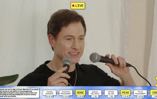 {"@context":"https://schema.org","@type":"VideoObject","name":"Bryan Johnson gets really, really high during 5 hour mushroom livestream","duration":"T1M28S","thumbnailUrl":"https://i.dailymail.co.uk/1s/2025/12/01/15/104341137-0-image-a-1_1764604471895.jpg","uploadDate":"2025-12-01T15:48:56+0000","description":"The livestream featured a DJ set by Grimes, and other...