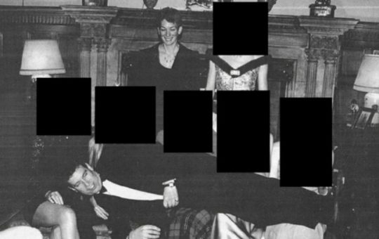 A photograph appearing to show Andrew Mountbatten-Windsor reclining across the laps of five women in Sandringham (Picture: US Department of...