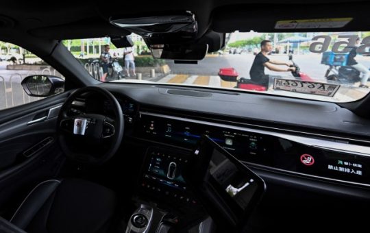 Ride-hailing apps Uber and Lyft are partnering with Baidu, whose robotaxis are becoming more common in China (Picture: AFP/Getty Images)...