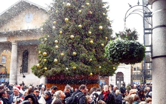 Crowds enjoy fake snow at Covent Garden Market last Christmas Eve (Picture: Shutterstock) Christmas will be a cold one this...