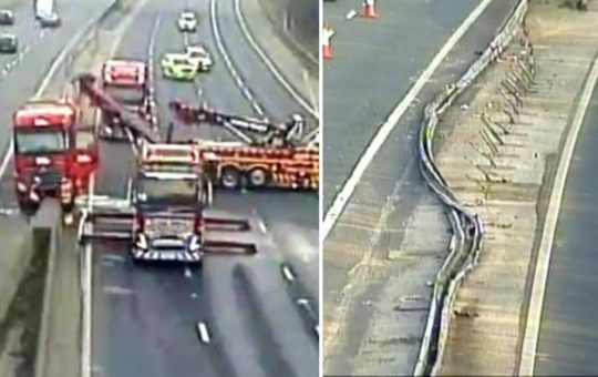 The crash and diesel spillage are causing major disruption (Picture: Highways England) A driver has been hospitalised after a lorry...