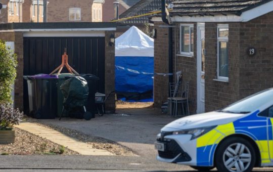 Police set up a tent in the garden of the home in Ancaster where the remains were found (Picture: Terry...