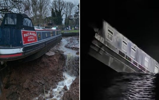 Two boats ended up in an apparent sinkhole in the Whitchurch Canal, with footage showing one as it descends (Pictures:...