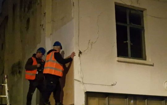 Moment houseboat is swallowed by sinkhole opening on canal