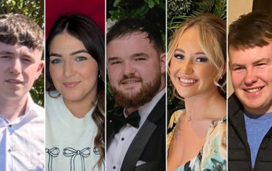 Pictured left to right, Shay Duffy, Chloe McGee, Alan McCluskey, Chloe Hipson and Dillon Commins all died in the crash...