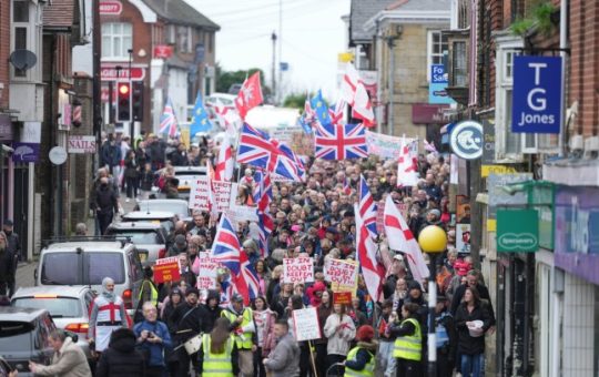 Thousands of protestors rallied against the plans to turn an abandoned army camp into asylum accommodation (Picture: Eddie Mitchell) A...